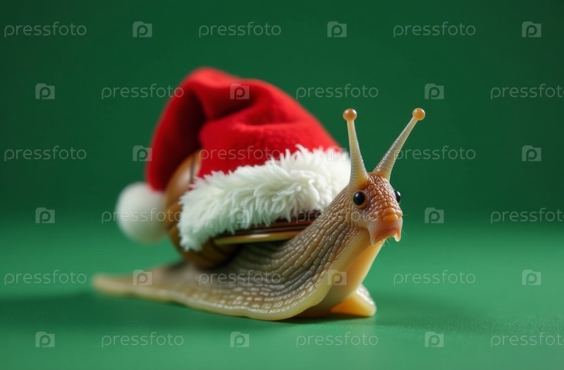 Новогодний портрет улитки в хижине Санта Клауса Зеленый, рождественская открытка. искусственно созданный