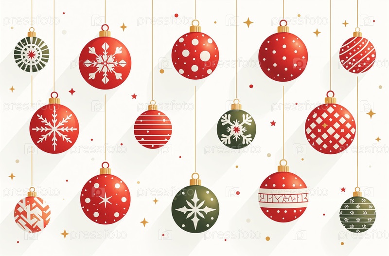 Рождественская открытка, рождественские шары и снежинки на цветном фоне. искусственно созданные