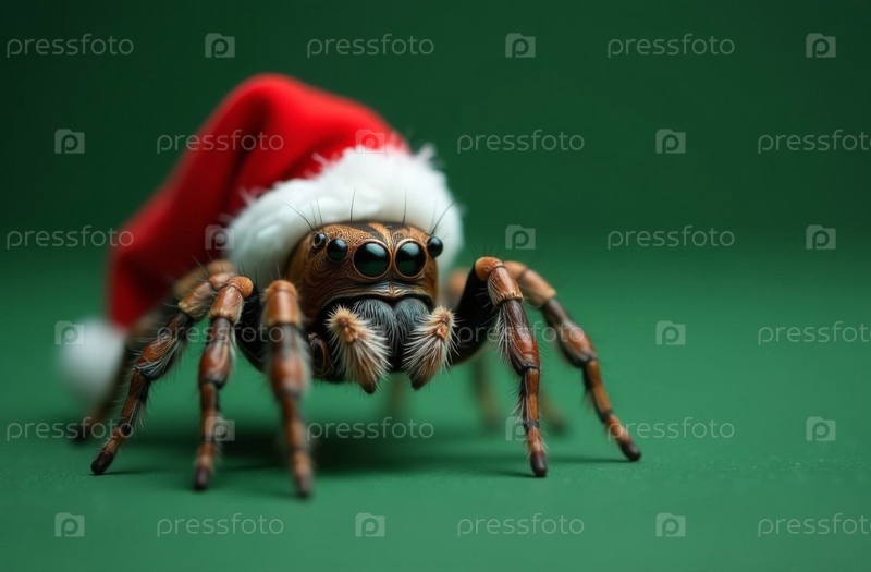 Новогодний портрет паука в хижине Санта Клауса Зеленый, рождественская открытка. искусственно созданный