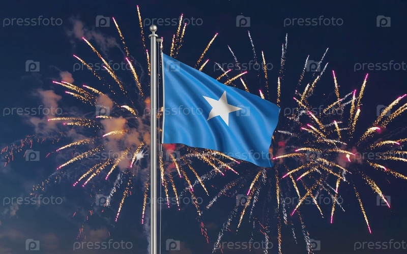 Al Generative National flag Independence State Сомали, фоновий фейерверверк