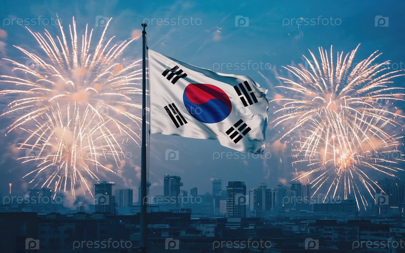 AI Generative National flag Independence State жжнак Корек, фоновьй фейерверверк