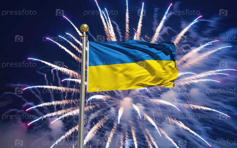 ИИ генеративный национальный флаг Независимость Украины, фоновый фейерверк