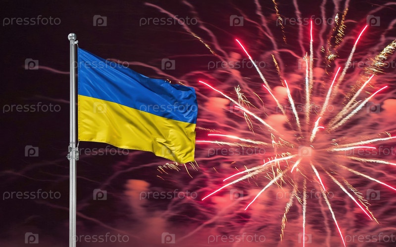 ИИ генеративный национальный флаг Независимость Украины, фоновый фейерверк