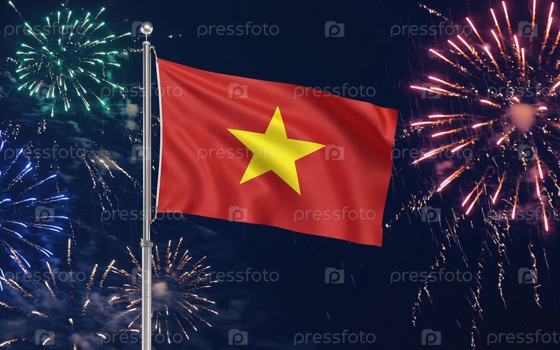 Al Generative National flag Independence State Вьетнак, фоновий фейерверверк