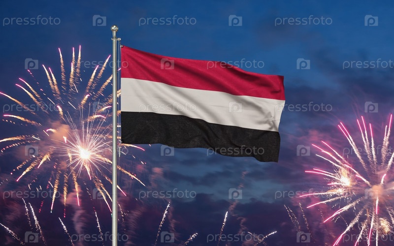 Национальный флаг Йемена, фоновый фейерверк