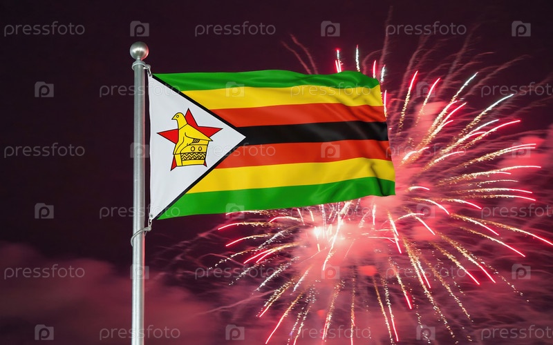 Национальный флаг независимости Зимбабве, фоновый фейерверк