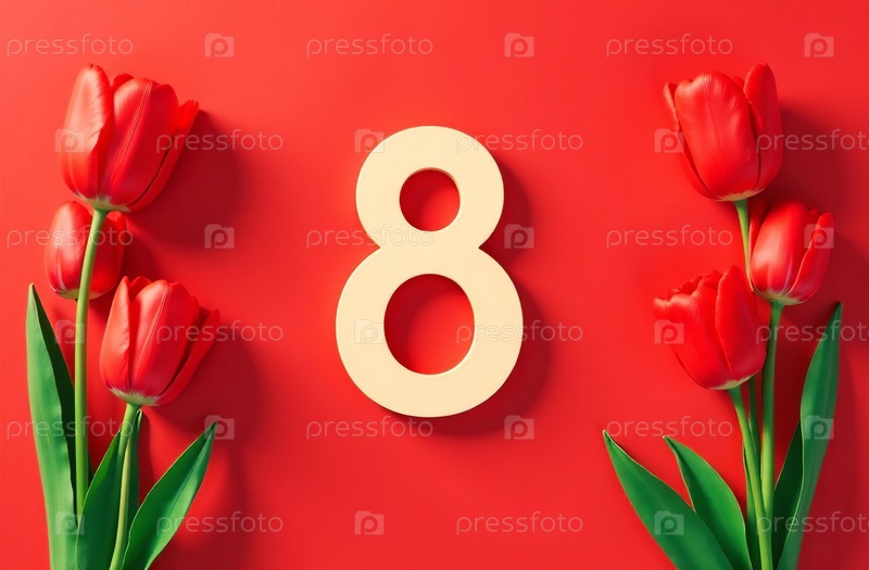 Открытка к Международному женскому дню 8 марта на красном фоне