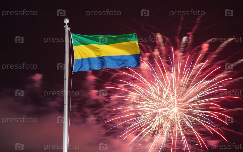 AI генеративный Национальный флаг Независимости Габона, фон с фейерверком
