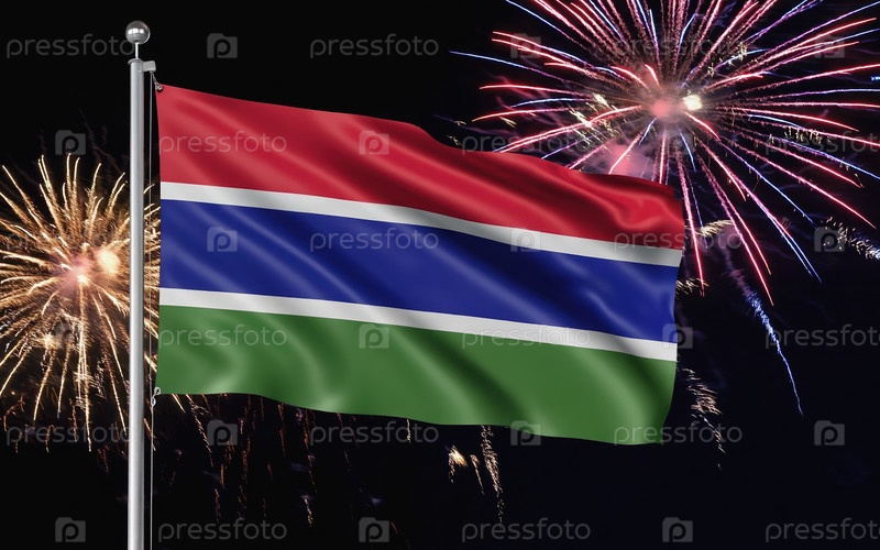AI генеративный Национальный флаг Независимости Гамбии, фон с фейерверком