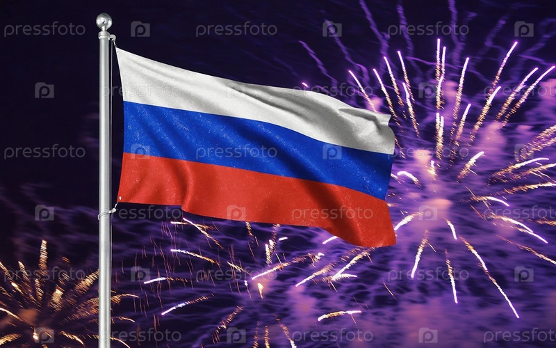 ИИ генеративный Национальный флаг Независимости России, фон с фейерверком