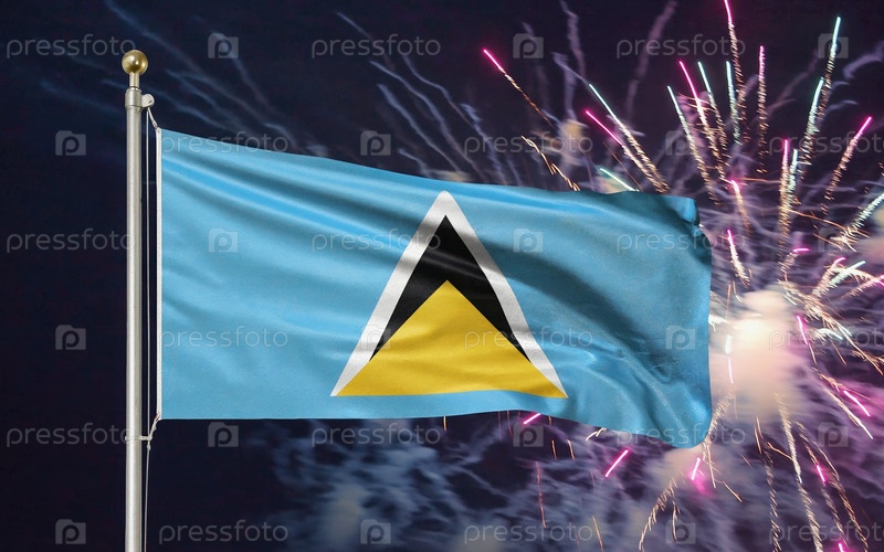 Национальный флаг независимости Сент-Люсии представляет собой фоновый фейерверк