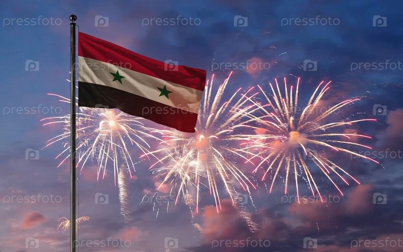 AI Generative National flag Independence State Сирия, фоновый фейерверк