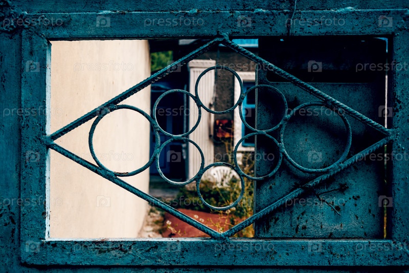 Старый металлический забор возле небольшого деревенского дома коттедж пригородный городской район