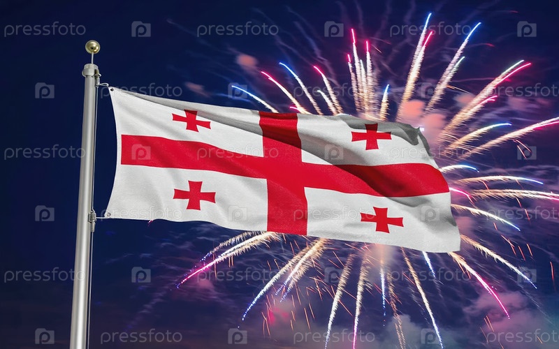 Генеративный национальный флаг Грузинской независимости, фоновый фейерверк