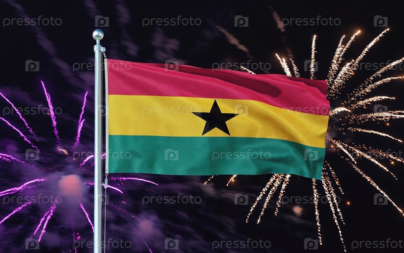 AI генеративный Национальный флаг Независимости Ганы, фон с фейерверком