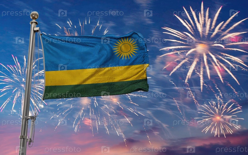 Национальный флаг независимого государства Руанда, фоновый фейерверк