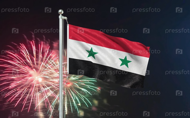 AI Generative National flag Independence State Сирия, фоновый фейерверк