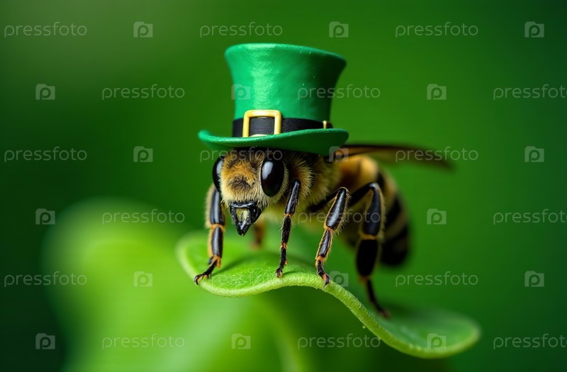 Создает пчелиное животное в традиционном зеленом ирландском шляпном костюме, открытке на День Святого Патрика