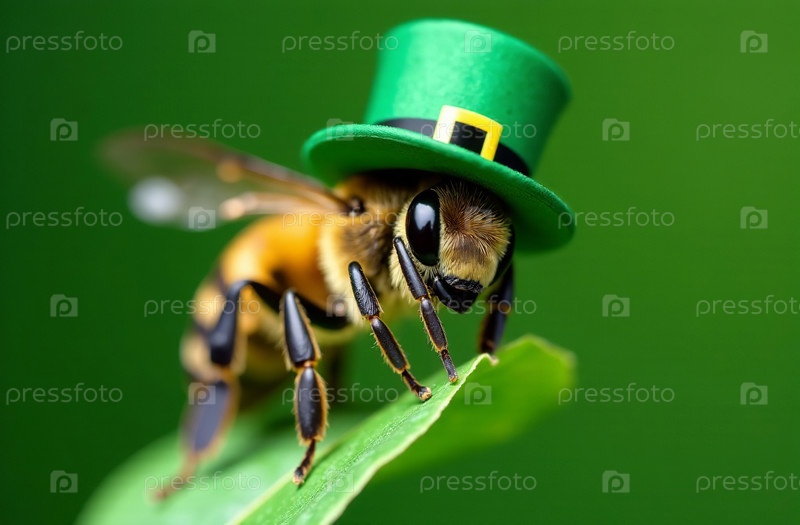 Создает пчелиное животное в традиционном зеленом ирландском шляпном костюме, открытке на День Святого Патрика