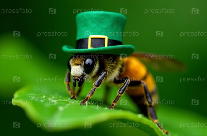 Создает пчелиное животное в традиционном зеленом ирландском шляпном костюме, открытке на День Святого Патрика