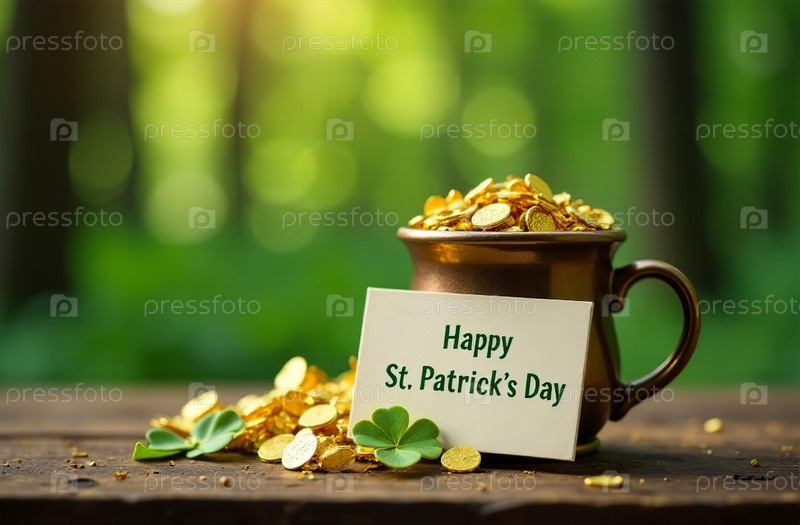 Карта Дня Святого Патрика опирается на горшок из золота на зеленом фоне