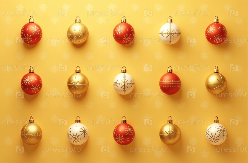 Рождественская открытка, рождественские шары и снежинки на цветном фоне. искусственно созданные