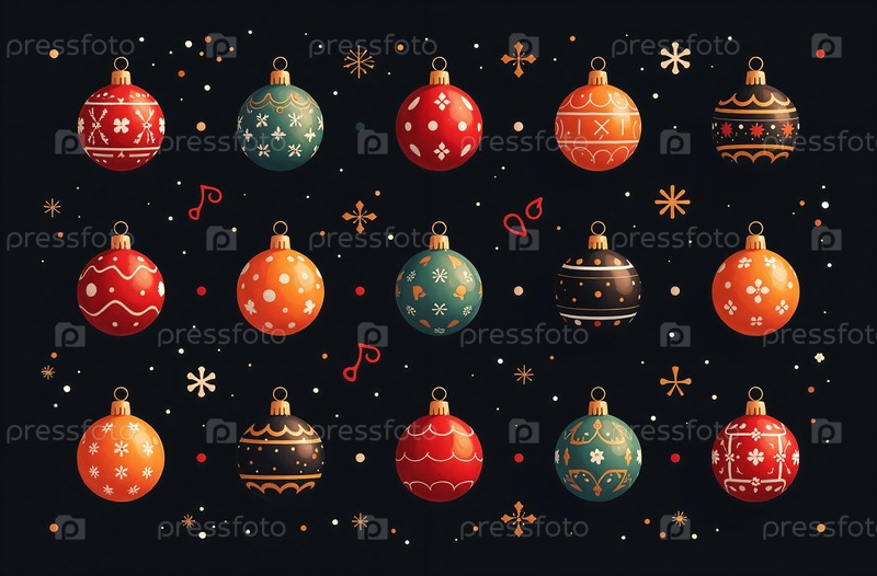 Рождественская открытка, рождественские шары и снежинки на цветном фоне. искусственно созданные