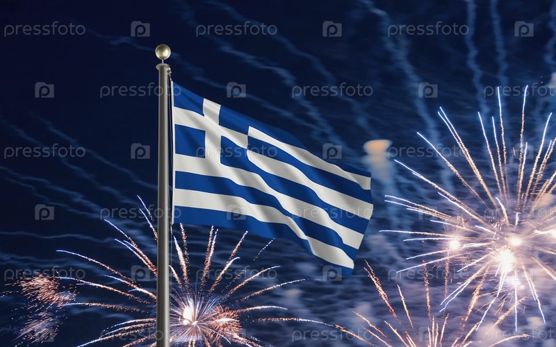 ИИ генеративный национальный флаг независимости Греции, фон с фейерверком