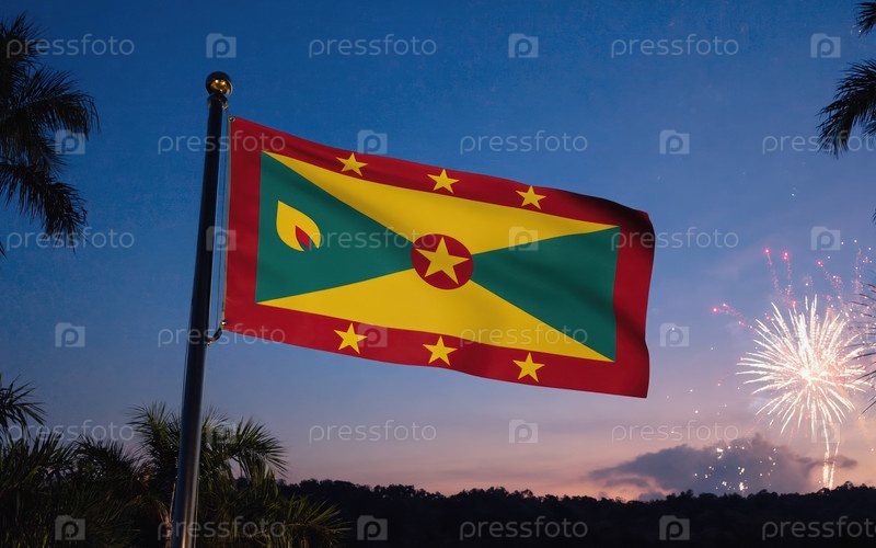 ИИ генеративный национальный флаг независимости Гренады, фон с фейерверком