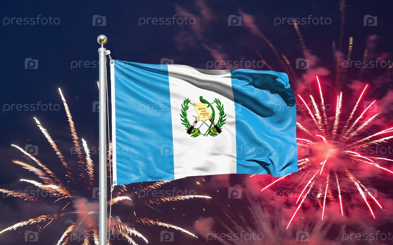 Генеративный национальный флаг независимости Гватемалы, фоновый фейерверк