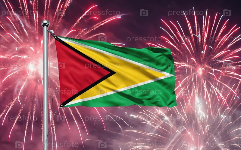 Генеративный флаг национальной независимости Гайаны, фоновый фейерверк AI