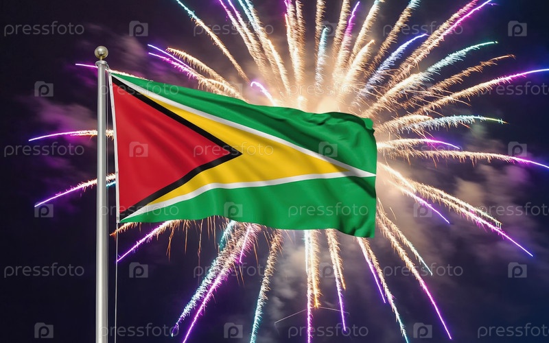 Генеративный флаг национальной независимости Гайаны, фоновый фейерверк AI