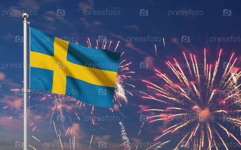 AI Generative National flag Independence State Швеция, фоновый фейерверк