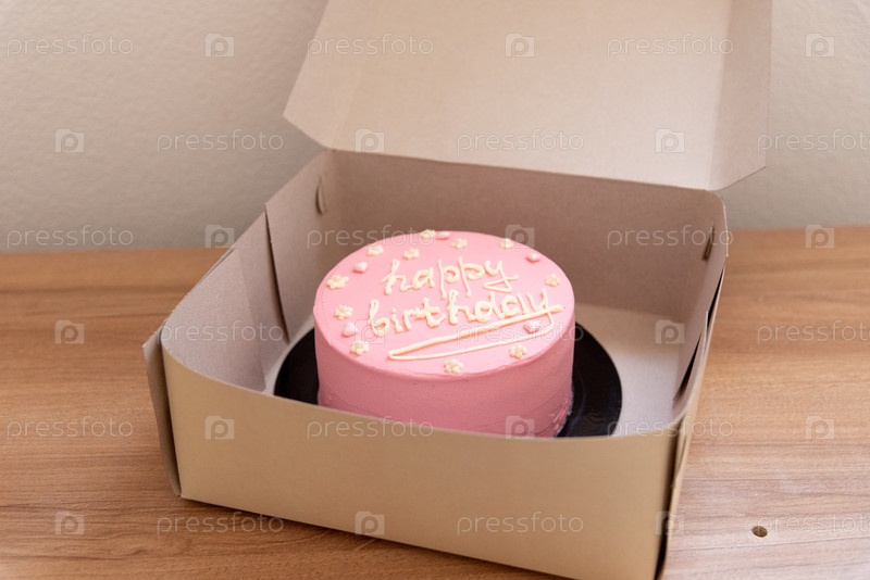 Розовый торт с надписью 'С днем рождения';
