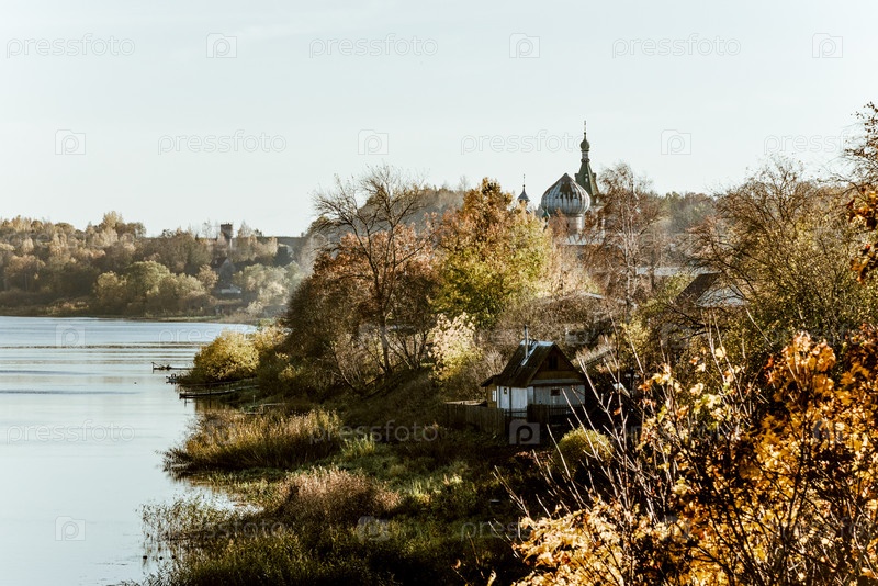 Православный собор Кирк с золотыми куполами и крестами, снаружи