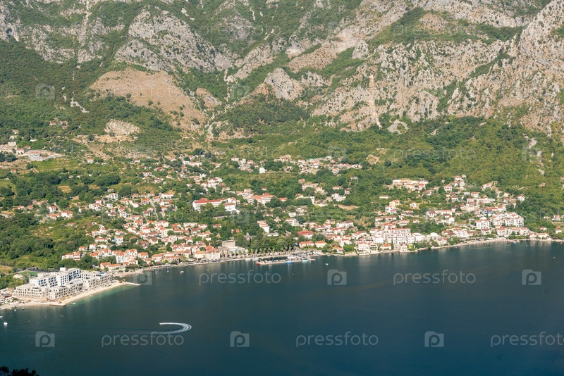 Вид на залив Рисан и Боко Котор на Адриатическом море в Черногории