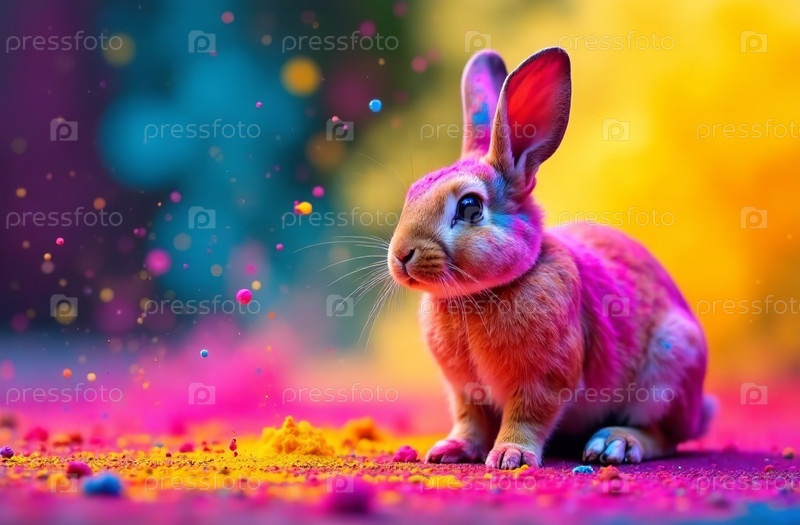 Животный кролик опрыскивал красочными красками чоли индийского весеннего фестиваля