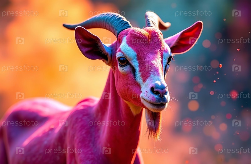 Животное козло распылялось красочными красками Холи, индийского весеннего фестиваля