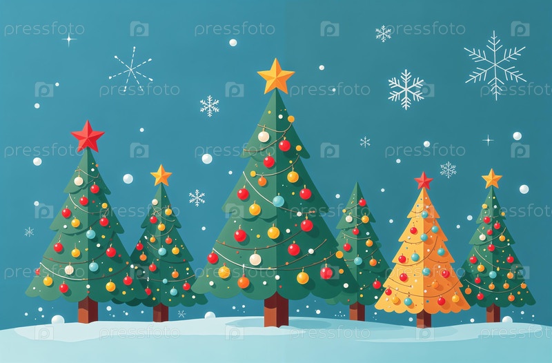 Рождественская елка упакована в подарки, есть лес, Новый год, праздничная открытка. искусственно созданная