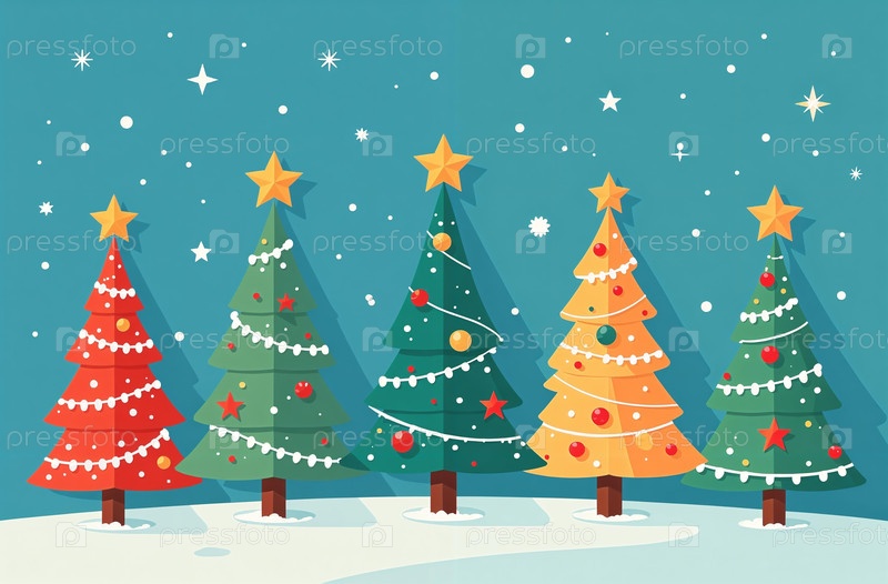 Рождественская елка упакована в подарки, есть лес, Новый год, праздничная открытка. искусственно созданная