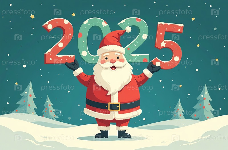 Радостная рождественская открытка, Новый год Санта-Клаус в костюме