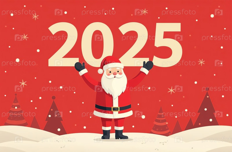 Радостная рождественская открытка, Новый год Санта-Клаус в костюме