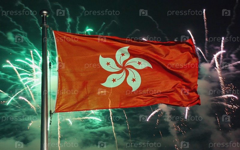 Генеративный национальный флаг Гонконга Независимость, Фейерверк AI на заднем плане