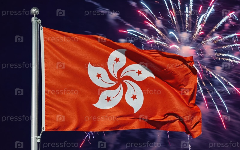 Генеративный национальный флаг Гонконга Независимость, Фейерверк AI на заднем плане