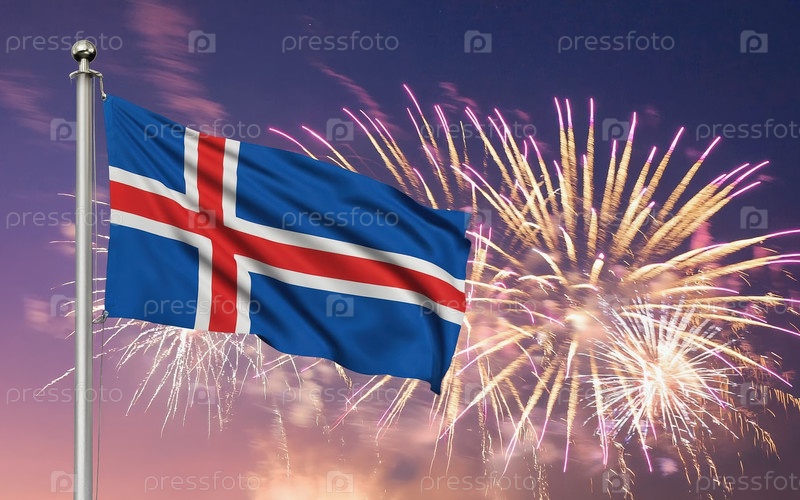 AI генеративный Национальный флаг независимости Исландии, фон с фейерверком