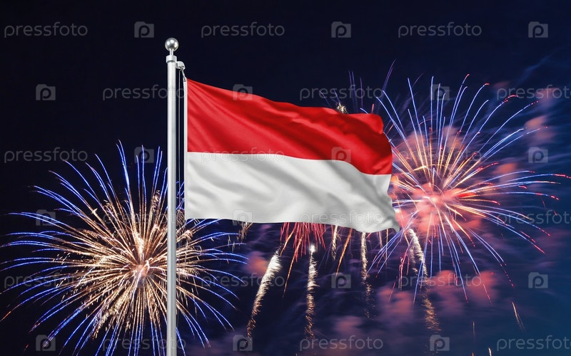 AI генеративный Национальный флаг Независимости Индонезии, фон с фейерверком