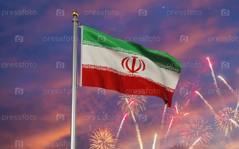 AI Генеративный Национальный флаг Независимости Государства Иран, Фейерверк на фоне