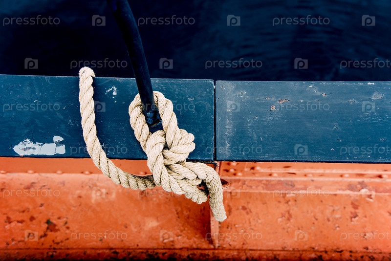 Закрытие верёвки с узловым концом, привязанным вокруг клинта на причальном оборудовании парусника