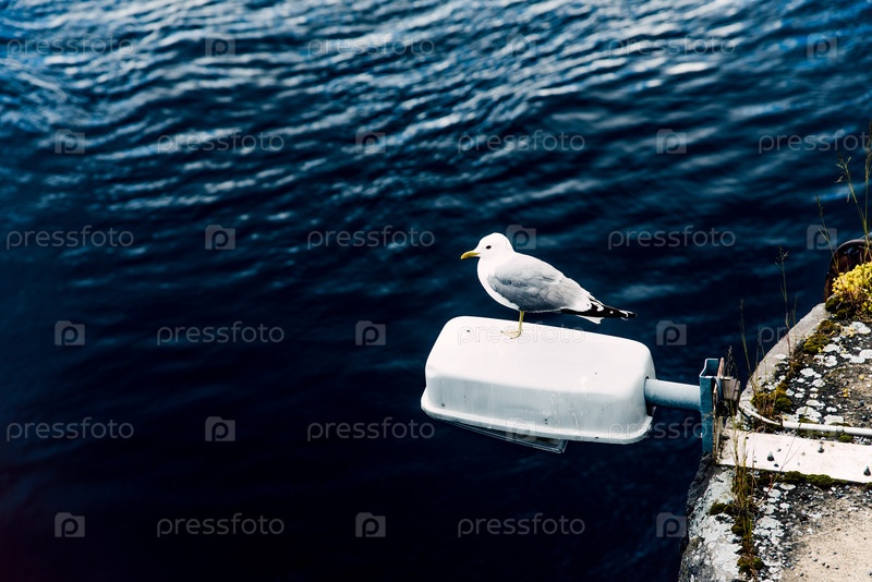 Дикие чайки летают и сидят в воде океанического морского пруда, наблюдая за птицами в дикой природе