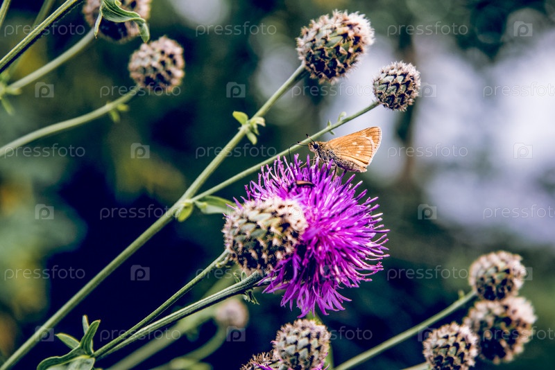 Бабочка-монарх сидит на цвете и собирает пыльцу, опыляющую цветущие растения насекомыми